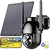 Solar Security Cameras Wireless Outdoor, 2K PTZ WiFi 3MP Indoor Security Camera for Home with Spotlight, PIR Motion Detection,Siren, Color Night Vision, 2-Way Talk, SD/Cloud Storage