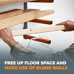 - Optimize your garage, basement, or workshop with our heavy-duty BORA Lumber Storage Rack. Designed for versatility, this robust lumber organizer features 3 adjustable levels, allowing you to tailor the setup to your specific needs. Whether you're storing lumber, firewood, sheet metal, PVC, or even seasonal items like skateboard or snowboard, this wall storage rack keeps everything neatly arranged and accessible. Each BORA wood rack can support up to 110 lbs, offering a total weight capacity of 300 lbs, making it perfect for holding even your heaviest supplies and materials. Crafted from powder-coated 1-inch steel tubes, our wood storage rack is built to withstand the rigors of daily use, providing long-lasting durability. This heavy duty wall rack maximizes your workspace, freeing up floor space and keeping your workbench and garage area clutter-free. With easy installation and sturdy construction, this BORA Lumber Rack storage solution ensures your equipment, materials, and tools are securely stored and readily available at any time.