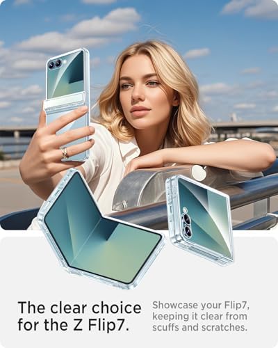 - 【Seamless Wireless Charging & Raised-Edge Protection】Our ZFlip7 Case Clear is ONLY for Samsung Galaxy Z Flip 7, Not Compatible With Z Flip 7 FE, please check your phone model before order it. The Z Flip 7 Phone Case with Screen Protector hugs so tightly that you can drop it on any charger—kitchen counter, bedside table, or the charging stand in your car—and power up at full speed without ever removing it. Lifted screen edges and Camera Guard lens frames provide enhanced scratch protection.