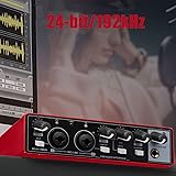 USB Audio Interface, Interface for Recording Music, USB2.0 Studio Equipment for Mac/PC, XLR Input, 24Bit/192kHz, Plug & Play, 48V Phantom Power, Red