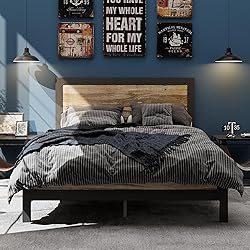 Heavy-Duty Construction:Features thickened 0.7-inch metal tubes and reinforced 0.6x0.98-inch square legs, supporting up to 800 lbs. Premium screws and anti-slip leg caps ensure unmatched durability and safety. Industrial Chic Design: Rustic riveted headboard/footboard crafted from 29 lbs of high-quality metal, blending rugged industrial style with elegant wooden accents to elevate your bedroom aesthetic. Zero Noise Guarantee: Equipped with rubber-padded slats and plastic floor protectors to eliminate squeaks and shield your floors from scratches. Tool-Free Assembly:Simple 30-minute setup—includes all pre-packed tools, hardware, and clear instructions. No extra tools needed! Smart Storage Space:10.8-inch elevated frame creates ample under-bed storage, perfect for organizing bins, luggage, or seasonal items.