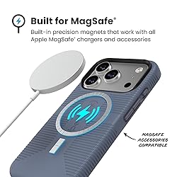 PERFECT FIT FOR IPHONE – Tailored precisely for your device to maintain full access to buttons, ports, and speakers. Raised edges help safeguard screen and camera lenses from flat surfaces and daily wear. TEXTURED NO-SLIP GRIP – Elevated rubber ridges along the back and sides enhance grip and reduce the risk of slips—perfect for secure handling during one-handed use or while on the move. DUAL-LAYER PROTECTION – A tough polycarbonate shell combines with a shock-absorbing inner lining to help cushion your phone from unexpected drops, bumps, and everyday accidents. RAISED BEZEL DESIGN – Slightly elevated edges provide an added layer of defense by keeping your screen and camera lifted away from contact with abrasive surfaces. MAGSAFE COMPATIBLE – Features built-in magnets that align seamlessly with MagSafe chargers and accessories for reliable wireless charging without removing your case.