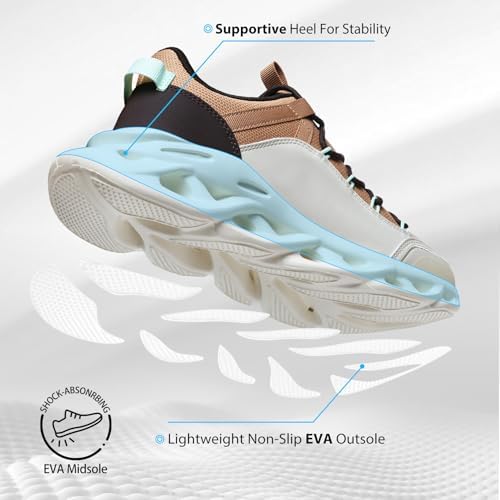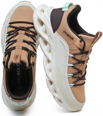 GSLMOLN Walking Shoes Men Breathable Athletic Sneakers Lightweight Gym & Daily Running Comfortable Cushioned Midsole Khaki