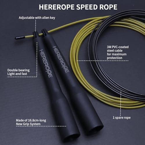 Speed Jump Rope for Men Women, Hererope Speed Rope With Dual Bearing System, 2 Cables, Adjustable Jump Rope for Boxing, CrossFit, HIIT & Strength TrainingDouble Unders, Fitness Workouts Training