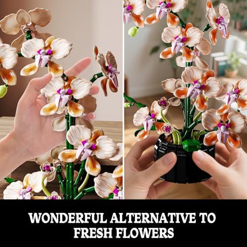 Champagne Orchid Flower Building Set, Icon Flowers Building Block Compatible with Lego, Stunning Botanical Display Gift for 8-14 Kids and Adults (866 Pcs)