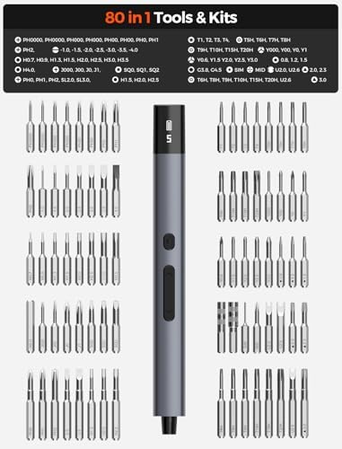 - 【80-in-1 Magnetic Bits】Equipped 80 precision bits with hardness up to 60HRC, which are resilient, and durable.Making it a must-have for tech repairs and DIY enthusiasts. A perfect gift for gadget lovers!