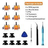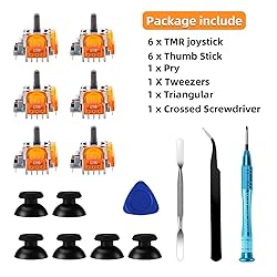 6 Pack TMR Joysticks Replacement: Designed for PS5 controller, the PS5 joystick kit includes:6 * TMR Joystick , 6 * Thumb Stick,1 * Tweezers , 1 * Triangular, 1 * Pry Bar, 1 * Crossed Screwdriver. You also need a welding tool which is not included in the kit. Tunneling magnetoresistance technology: Joystick provides no drift, longer lifespan, high accuracy, high response frequency, better temperature stability, prevents interference from magnetic triggers, lower power consumption. Sensitivity upgrade: Using advanced magnetic sensing technology, it achieves higher center sensitivity and resolution than traditional Hall joysticks, bringing more precise control. Compatibility: Replacement analog joystick compatible with PS5 Controller Only (NOT FIT for PS4, Xbox One, Xbox One S/X Controller). Suggestion Tips: Replacing the analog sticks requires soldering. If you lack soldering experience, we strongly recommend having a professional perform the PS5 joystick replacement.After replacing the joystick, if you experience stick drift (where the stick doesn't center properly), manual recalibration will be necessary.
