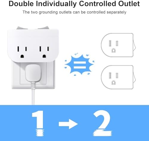 2 Port Electrical Outlet Plug Switch Dual Independent Switches 1-to-2 dual three-prong grounded outlet with independent switches for each. No need to repeatedly plug and unplug to disconnect power. Simply turn the switch to “ON” to activate the power indicator light and start working. Turn off the switch to cut off power completely, ensuring energy savings and safety. Premium Certified Quality Certified by ETL, tested and approved to meet safety standards. The device has a rated voltage of 15A, 125V, 60Hz, and 1875W, ensuring stable current. Compact & Space-Saving Compact design allows for single-wall-outlet use without blocking adjacent sockets, making it suitable for narrow spaces. It can be used on kitchen countertops, bedside tables, in living rooms, offices, and more, providing reliable grounding protection for devices without independent switches. Wide Compatibility Provides reliable grounding protection for devices without independent switches. Suitable for use on kitchen countertops, bedside tables, in living rooms, offices, and more. It can be used with Christmas lights, lamps, fans, coffee machines, electrical appliances, electronic products, and can also meet the needs of high-power appliances such as air conditioners and electric heaters (up to 1875W).