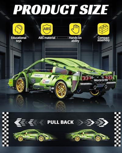 1:18 Technic Super Sports Cars Model Sets - 586 PCS Green MOC Building Block Car Raceing Engineering Toys - Gift Idea for Adults Boys Girls for Play and Display Collection