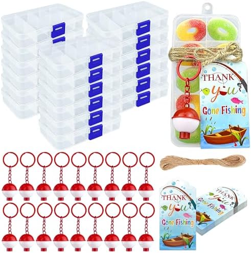 18 Sets Fishing Candy Little Tackle Boxes Party Favors with Thank You Cards Fish Float for Gone Fishing Theme Party Supplies