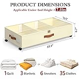 Versatile Dividers: Yecaye under bed storage containers comes with 2 adjustable dividers that let you organize items of varying sizes effortlessly. Whether it’s winter boots or seasonal clothes, configure the compartments to fit your exact needs. Our underbed storage ensures every inch of space is utilized efficiently, transforming chaos into an artful organization Roll It Away, Easy Access: Under bed storage dimensions: 33.3 x 16.5 x 6.7 inches (with wheels), (applicable under-bed height > 7 inches) Equipped with four 360° swivel wheels, this under bed storage with wheels glides gracefully from under the bed or sofa. Forget about heavy lifting—retrieve your hidden treasures with minimal effort. Access those hard-to-reach areas with a simple push and enjoy the mobility that makes house chores a breeze Clear Top, Instant Insight: No more digging through boxes to find what you need. Our under bed shoe storage comes with a transparent lid, making it easy to spot contents at a glance. Whether looking for your favorite sweater or that elusive pair of shoes, finding your item is now a straightforward task, saving you time and eliminating frustration Versatile Uses: From under bed to closet, this under bed storage drawers adapts to various scenarios effortlessly. The metal frame is removable, allowing you to place the cloth bin separately. Perfect for apartments, dorms, or any space-conscious environment, our rolling storage bin is a versatile storage solution that fits seamlessly into your lifestyle Strong Support: This under bed rolling storage is made of high quality 600D oxford fabric and robust metal frame, can handle up to 66 pounds effortlessly. Whether storing books, blankets, or other bulky items, rest assured that everything will stay safe and sound. The sturdy build promises reliability, making it a practical solution for all your heavyweight storage needs