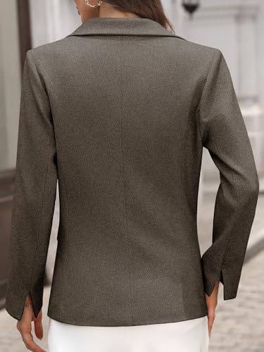 ELLEVEN Women’s Herringbone Tweed Blazer – Slim Fit Business Casual Work Jacket with Flap Pockets, Long Sleeve