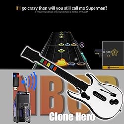 - 🎸 Built for PC Gaming Only – Specially designed for PC rhythm game players. Supports Clone Hero, Guitar Hero III, World Tour, Legends of Rock, Rock Band 2/3, Fortnite Festival, and more—a must-have for desktop music game lovers.📡 True Plug & Play with 2.4G Wireless Technology – Simply insert the included USB dongle into your PC and power on the guitar—it automatically connects without pairing or setup. No drivers, no delays, no hassle.🎶 Enhanced Gameplay Experience – Equipped with color-coded responsive fret buttons, elongated strum bar, and high-sensitivity whammy bar. Ideal for competitive and casual Clone Hero sessions.🎁 Perfect for Music Game Fans & Parties – Whether you’re practicing solos or battling friends, this wireless guitar brings immersive musical action to your desk—an excellent gift for players of all ages.🔋 Battery-Powered Convenience – Runs on 2x AA batteries (not included), allowing you to rock freely without tangled cords or charging delays.⚠️ Note: This controller is only compatible with Windows PC. Not supported on PS3, Mac, or consoles.