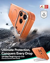 - ESR for iPhone 17 Pro Max Case with Stash Stand, 7X Military-Grade Drop Protection with Camera Control, Shock-Absorbing Phone Rugged Cover, Compatible with MagSafe Accessories, Cyber Series, Orange