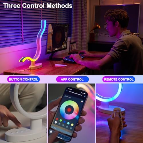 - 16 Million Colors & 213 Preset Modes:The smart RGB+IC table light can smoothly display rainbow chasing light effects created from 16 millions colors. 213 preset modes bring your entertainment, movies, songs and gaming to your life, Helping you immerse yourself in your favorite movies, games, or songs, enhancing your experience. DIY scene settings even can create a unique atmosphere for cozy evenings.