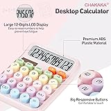 Large 12-Digit Tilted Display – Clear Viewing: With a bright, high-contrast LCD screen and a 15° tilt, this calculator desktop makes every number stand out—easy to read even in low light. The crisp display reduces eye strain and helps you stay focused and comfortable through every click Big, Responsive Keys with Mechanical Keyboard Feel: Enjoy smooth, accurate input with large bubble buttons that click like a mechanical keyboard—crisp, responsive, and satisfying. Designed with ergonomic key spacing and spring-supported structure, this basic calculator helps reduce wrist strain—perfect for long use Dual Power with Auto Shut-Off: This 4 function calculator runs on both solar power and a AAA battery (not included), ensuring consistent use in any lighting condition. Since lighting can change during the day, using a battery along with solar power ensures stable performance. Plus, it automatically shuts off after 10 minutes to save energy and extend battery life Aesthetic Design, Sturdy, and Ready to Go: This Cute pink calculator blends vibrant rainbow color with a girlye design—perfect for brightening up your study space or workspace. Its sturdy plastic build and four anti-slip rubber feet keep it stable during everyday use, and the compact size fits effortlessly in your hand, backpack, or desk drawer Standard Functions & Easy to Use: This desk calculator is packed with essential functions for kids, students, teachers, and office professionals. It includes standard keys for addition, subtraction, multiplication, and division, plus features like percentage, square root, negative number input, memory recall (M+/M-/MRC), delete (→), and CE/AC buttons—all designed to make everyday calculation faster and easier Versatile & Giftable: This small electronic calculator fits perfectly into any setting—whether you're working in office and retail stores , running a small business, managing household finances, or studying at school. Ideal for basic math and budgeting, it brings a touch of fun to everyday functions. Makes a great back-to-school gift for students or a office desk accessories for women and girls After-Sales Service: All of our products come with 90 days of technical support. Our dedicated customer service team is here to help and will respond within 24 hours to address any questions or concerns you may have