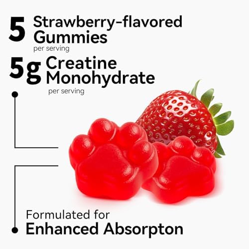 - 【Flexible Dosing】- Each creatine gummy contains 1g creatine monohydrate. Five gummies deliver a full 5g serving. Adjust your intake easily based on weight and goals. Perfect Creatine gummies for men and women creatine supplementation.