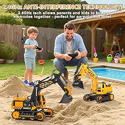 🎄 Educational & Imaginative Play:This excavator toy mimics real construction vehicles, fueling kids' creativity and sparking interest in engineering. Ideal for indoor and outdoor use at home, schools, or playrooms, it offers endless opportunities for imaginative role-playing. 🔥 All-in-One Functionality:6-in-1 Functional Operation - With forward/backward movement, left/right turns, digging, sand manipulation, 350° cab rotation, and 360° in-place spins. The durable build withstands rough play, making it suitable for both indoor adventures and outdoor construction "jobsites." 🏁 Uninterrupted Control:Powered by a reliable 2.4GHz wireless system, the excavator offers the key advantage of strong anti-interference performance, ensuring seamless control even in crowded play areas. With a 20+ meter remote range and 0.85 km/h speed, children can explore large spaces while developing coordination and spatial awareness. 🥰 ALL-TERRAIN TRACTION: Equipped with rugged tracks and a powerful motor that resists the impact of rocks or bumpy areas, it provides optimal balance no matter what the conditions. Easily conquer grass, gravel, sand and even uneven surfaces. 🎄DURABLE, SAFE CONSTRUCTION - Made with impact-resistant plastic and metal parts, the ruggedness combines with a child-friendly design that is durable and built to withstand rough handling. Ideal for children over 3 years old. High-quality and beautifully packaged in a gift box, it is an ideal birthday or holiday gift for both boys and girls. This digger is a thoughtful choice that balances durability with gift-giving appeal.