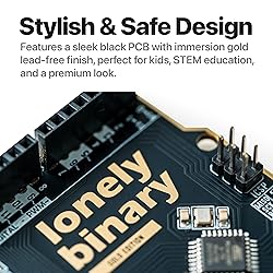 - Unleash Your Prototyping Potential with the Lonely Binary UNO R3 ATmega328P Development Board - Compatible with Arduino IDE Designed for makers, educators, and developers, the Lonely Binary UNO R3 ATmega328P Black Gold Edition is a lead-free development board with a black PCB and gold-plated finish. Featuring a USB Type-C interface, it supports modern prototyping for STEM, IoT, and robotics projects. The ATmega328P microcontroller enables compatibility with Arduino IDE, MicroPython, and third-party shields. RoHS-compliant materials and durable 2.54mm pin headers ensure reliable performance in labs, classrooms, and maker workshops. Ideal for users aged 14+. Key Features: Modern Connectivity: USB Type-C interface for MacBooks, PCs, and Android devices. Eco-Friendly Design: Lead-free, RoHS-compliant black PCB with gold-plated finish. Versatile Microcontroller: ATmega328P supports Arduino IDE, MicroPython, and shields. Durable Pin Headers: Corrosion-resistant 2.54mm pins for consistent connectivity. Educational Use: Ideal for STEM education, IoT, and robotics prototyping. What’s Included: 1 × ATmega328P-Based Development Board (Black Gold Edition, USB Type-C) Note: This product does not include batteries; use USB Type-C or external power sources. Build smarter with the Lonely Binary ATmega328P Black Gold Edition, your solution for reliable prototyping.