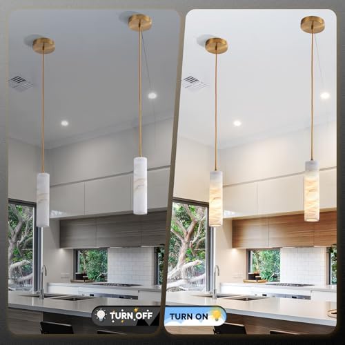 - 【Height Adjustable】The kitchen island pendant light is 13.85 inches high, 2.36 inches in diameter, and is height-adjustable with a maximum length of 70.86 inches (180 cm). This alabaster chandelier height can be effortlessly customized to your preference, offers superior flexibility to fit any space, complementing various room layouts.