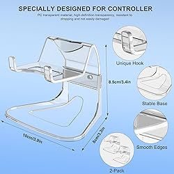 Wide Compatibility: Fits most official and third-party controllers for Xbox, PlayStation, Switch, and PC. Show off and organize all your favorite gamepads in one sleek stand. 3 Ways to Display: Place it on your desk with the base. Mount it on the wall using nails (nails not included).. Or attach it with adhesive tape or glue (glue not included). Choose what works for your space. Clear & Durable Build: Made from tough PC material, this stand is crystal clear and built to last. It resists damage from drops or impacts, keeping your setup looking clean Showcase Your Gear: Display your controller collection with style. The transparent design puts your gear in the spotlight while keeping it safe, organized, and ready to play. Package List: 2 x Stands