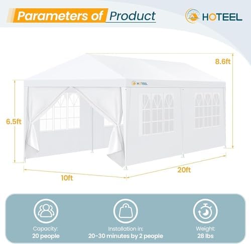 - 【Easy to Set Up】Our 10x20 white tent can be assembled by two people in just 15 minutes without any extra tools, making it perfect for starting a great party anytime, anywhere