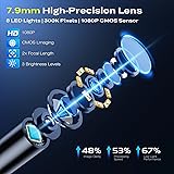 Endoscope Borescope Camera with Light, 4.3" IPS 1920P HD Inspection Camera, 50FT Semi-Rigid Snake Cable, IP67 Waterproof (7.9mm Probe) with 8 Adjustable LEDs for Sewer, Automotive Engine, Pipe, HVAC