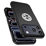PELEPUES Shockproof Case for iPhone 17 Pro Max, [Embedded Finger Ring] Military Grade Phone Case Cover with Reinforced Metal Stand Kickstand [Support Magnetic Car Holder] for iPhone 17 6.9'', Black