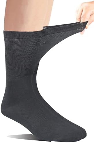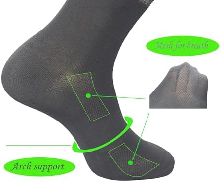 Yomandamor Men's 6 Pairs Bamboo Rayon Breathable Diabetic Mid-Calf Socks with Arch Support,10-13