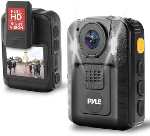 Pyle Police Security Video Body Camera | HD 2304 x 1296p Rechargeable Wireless Waterproof Wearable Law Enforcement Surveillance Camera | Includes Audio & Video Recording, Night Vision, Motion Detector