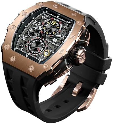 TSAR BOMBA Mens Watches Luxury Tonneau Watches for Men Waterproof 50M Analog Replica Wristwatch Chronograph Calendar Date Men’s Dress Business Work Watch Diver Large Square Face Watch