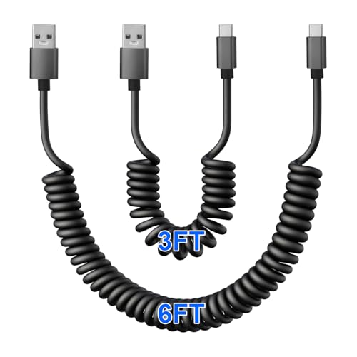 A-Goldnest usb c cable coiled usb c cable Fast Charging, (2Pack 6ft )Coiled USB A to Type C Charge Cord for Car, USB-C Charging Cable Compatible with iPhone 16/15/Samsung Galaxy S20 S10 S9 S8 Plus Note 10 9 8 and USB C Devices 1、USB C Cable Fast Charging for Car: Coiled type c car charger with spring shape design, portable and not tangled. It can well save the use of space in the car and say goodbye to the hassle of data cable clutter and tangles. 2、USB 2.0 Fast Charging: The USB A to Type c cable supports safe high-speed charging (5V/3A) and fast data transfer (480Mbps). USB-C fast charging cable provides up to 5V/3A safe charging current, which charging speed increased by 45%. can also sync data between two devices with this type-c cable. 3、Length of Use: 2Feet before stretching, maximum stretch length is 6feet. Comfortable length of use is 3-5 feet and bounce back to normal length well. Convenient for charging your devices in the bedroom, on the sofa, in the office, while travelling. Easy to use for different occasions, perfect for your different needs. 4、Perfect Compatibility: USB c cable well compatible with iPhone 16/16 Plus/16 Pro/16 Pro Max/15/15 Plus/ 15 Pro/ 15 Pro Max/Samsung Galaxy S10 S10e S10+ Plus 5G S8 S8+ S9 S9+ S8 Plus S9 Plus, Note 8 Note 9 Note10 Note10+ Plus 5G, A10e A20 A30 A40 A40s A50 A60 A70 A80 M30s A9/9s A9 Star A8s(2018) A6s C9 C7Pro C5Pro. LG G5 G6 G7 V40 V35 ThinQ V30S V30 V20 Stylo 4 5. G7/G7 Plus/ G7 Power/G6 /G6 Plus Z Z2 Z3 X4, LG G6 G7, Pixel 2 XL etc. 5、What You Get: A pack containing two retractable USB A to Type-C cables, each measuring either 3 feet or 6 feet in extended length.
