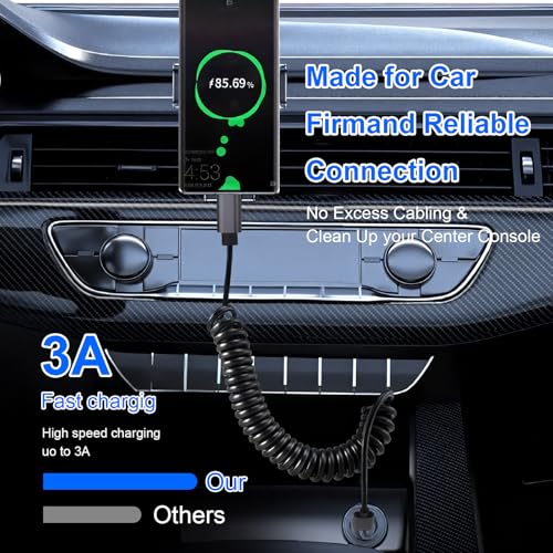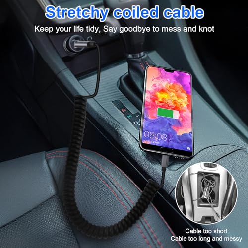 - 、USB C Cable Fast Charging for Car: Coiled type c car charger with spring shape design, portable and not tangled. It can well save the use of space in the car and say goodbye to the hassle of data cable clutter and tangles.