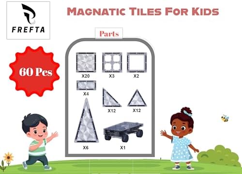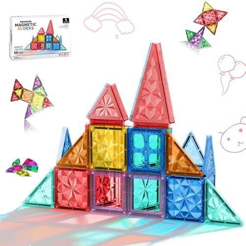 - 【60PCS Magnetic Tiles Building Set for Kids】 This colorful 60-piece magnetic tiles set includes a mix of squares, triangles, and special magnetic blocks. Perfect for and kids to build castles, houses, animals, and magnetic tile forts using magnetic tiles and magnetic blocks.