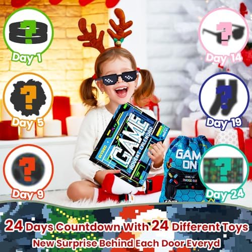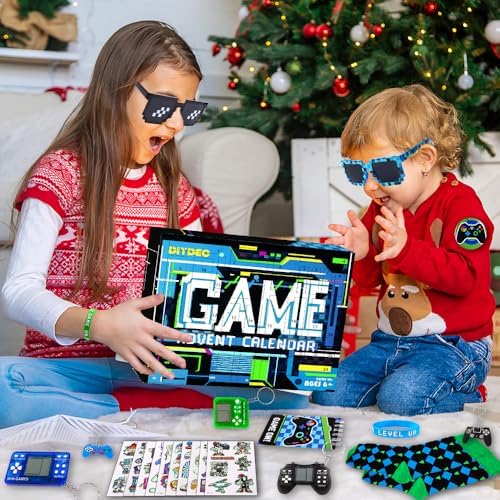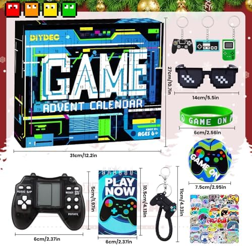 DIYDEC Christmas Advent Calendar 2025, 24 Days Christmas Countdown Calendar with Video Game Party Favors for Kids Xmas Keychains Bracelet Toys for Boys Girls Adults Goodie Bags Fillers