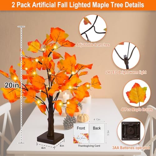 Fall Decor 2 Pack Fall Trees Artificial Lighted Maple Tree Thanksgiving Decor 48 LED Table Fall Lights Up Tree Battery Operated for Wedding Party Gifts Indoor Outdoor Autumn Harvest Home Decorations