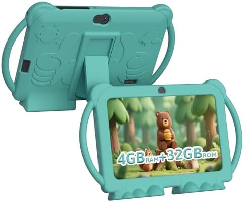 Kids Tablet 7 inch Android 12, 4GB RAM 32GB ROM, 512GB Expandsion, with Parental Control, WiFi, Bluetooth, Dual Camera with Silicone Case, 1PCS(Green)