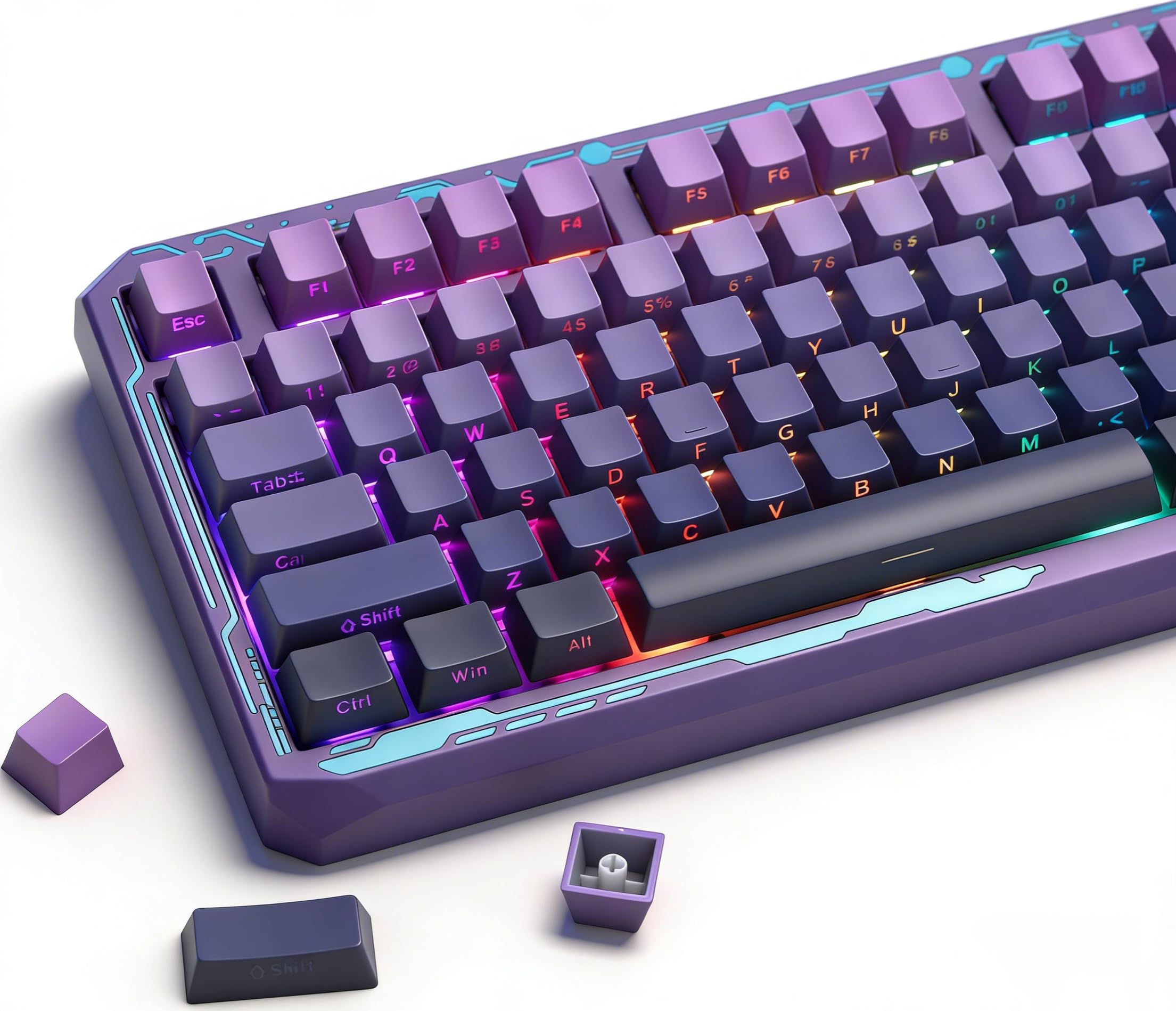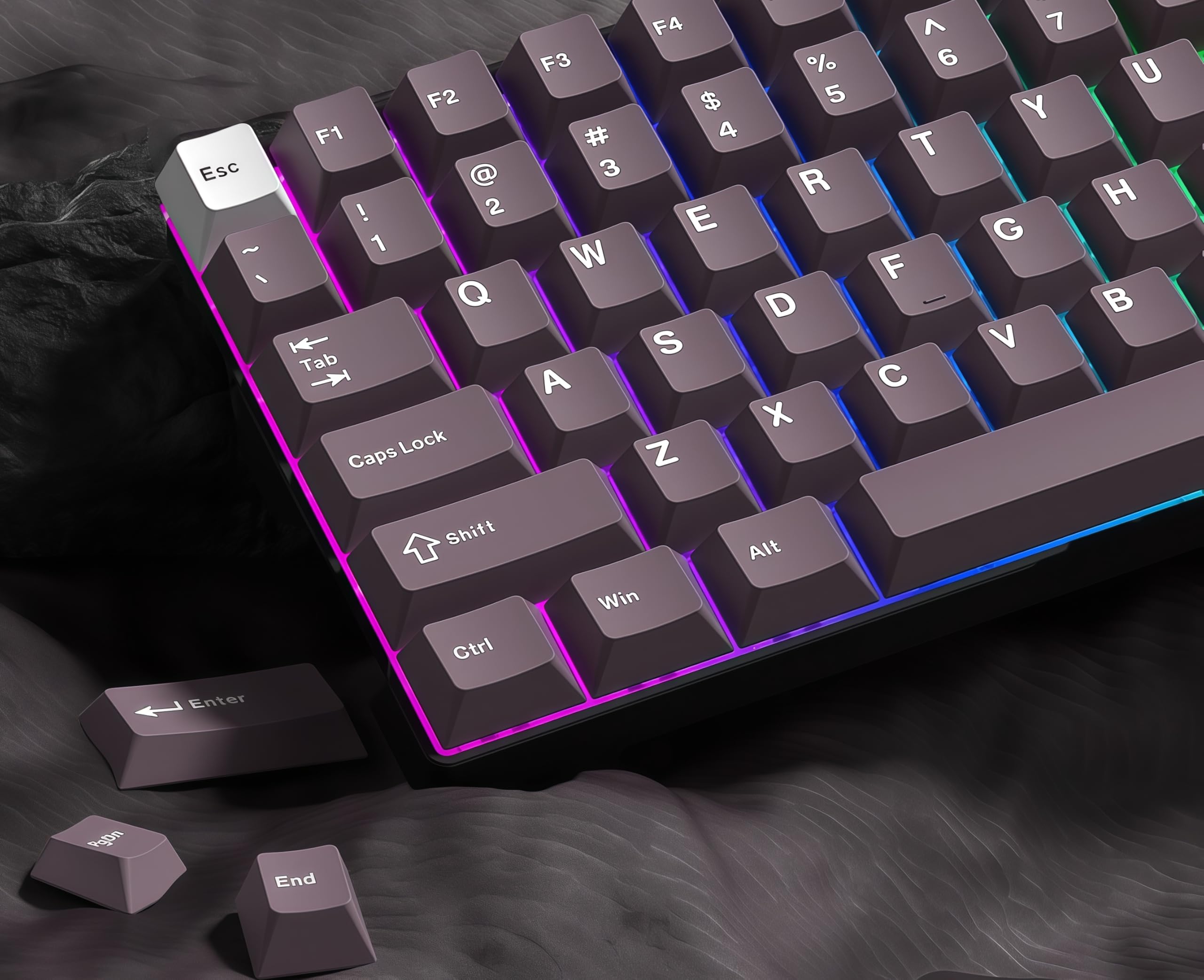 - 【Shine Through Side Printed Keycaps】 Designed with side-printed legends that allow your backlight to glow through the characters, these shine through keycaps enhance your RGB effects while maintaining a clean, minimalist aesthetic. (Note:The side print keycap is more suitable for keyboards with LED facing south.)