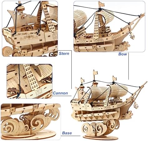 - [ 3D Wooden Puzzles Ship Building Kit for Adults & Teens ]Crafted from eco-friendly plywood, this 3D wooden ship model kit for adults features 118 precision laser-cut pieces that snap together with no glue or tools required.