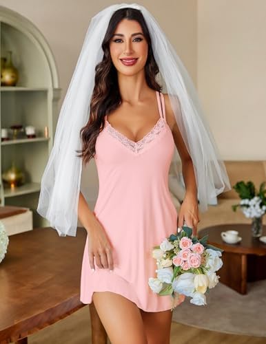 Avidlove Women's Nightgown Sexy Nightwear Modal Sleepwear Babydoll Lace Chemise Nightie V-Neck Full Slip Spaghetti Strap