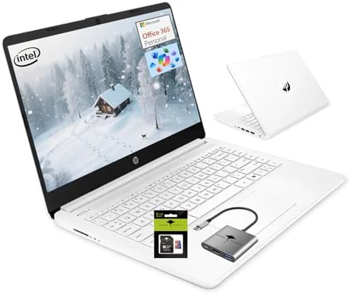 HP 14" Student-Laptop 1-Y office365 Back to School, Quad Core Intel Processor(Up to 3.6GHz) 16GB RAM 256GB Storage(64GB UFS + 256GB Ghost Manta SD Card) Computer Laptop with Wi-Fi 6 Win11