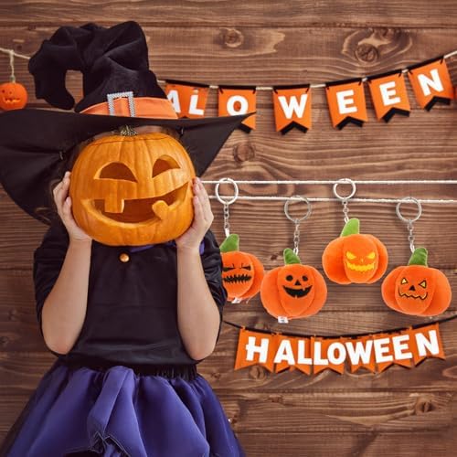 6 Pcs Halloween Pumpkin Plush Keychain Horror Pumpkin Keychain Soft Ornaments Plush Toy for Party Favors Bag Charm
