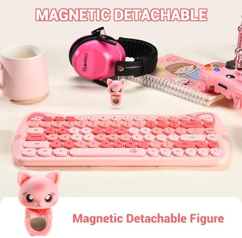 - -Magnetic Cat Design : Exclusive removable magnetic cat figure sits on top of the keyboard, adding a playful and stress-relieving touch. Cat lovers can enjoy stroking it between typing, making work or study more enjoyable and unique.