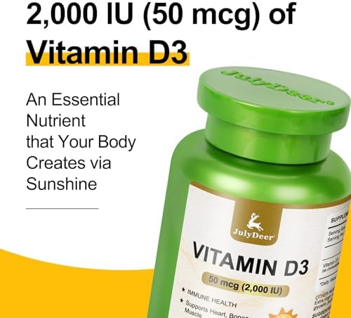 Vitamin D3 2000 IU (50 mcg) 180 Softgels | Supports Immune Health, Calcium Absorption & Bone Strength | Essential for Healthy Bones, Non-GMO, No-Gluten, 1 Serving Per Day for Daily Health