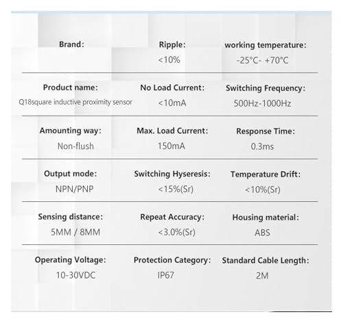 [{"options":[{"sku":"B0FG7RXLGW","option_code":"1","image":"https:\/\/m.media-amazon.com\/images\/I\/51FTI5X-RQL._SL1500_.jpg","cloudfront_image":"https:\/\/m.media-amazon.com\/images\/I\/51FTI5X-RQL._UXTMWIDTH_UYTMHEIGHT_.jpg","label":"Q18C non-flush NPN NO-Sn:5mm","selected":false,"available":true,"images":[{"alt":"","src":"https:\/\/m.media-amazon.com\/images\/I\/51FTI5X-RQL._SL1500_.jpg"}],"delivery_data":{"fulfill_by":"","sold_by":"","vendor_delivery_day":""},"availability":{"stock":true}},{"sku":"B0FG7T17ZX","option_code":"2","image":"https:\/\/m.media-amazon.com\/images\/I\/51FTI5X-RQL._SL1500_.jpg","cloudfront_image":"https:\/\/m.media-amazon.com\/images\/I\/51FTI5X-RQL._UXTMWIDTH_UYTMHEIGHT_.jpg","label":"Q18C non-flush NPN NO-Sn:8mm","selected":false,"available":true,"images":[{"alt":"","src":"https:\/\/m.media-amazon.com\/images\/I\/51FTI5X-RQL._SL1500_.jpg"}],"delivery_data":{"fulfill_by":"","sold_by":"","vendor_delivery_day":""},"availability":{"stock":true}},{"sku":"B0FG7S5FB5","option_code":"0","image":"https:\/\/m.media-amazon.com\/images\/I\/51FTI5X-RQL._SL1500_.jpg","cloudfront_image":"https:\/\/m.media-amazon.com\/images\/I\/51FTI5X-RQL._UXTMWIDTH_UYTMHEIGHT_.jpg","label":"Q18C non-flush PNP NO-Sn:5mm","selected":false,"available":true,"images":[{"alt":"","src":"https:\/\/m.media-amazon.com\/images\/I\/51FTI5X-RQL._SL1500_.jpg"}],"delivery_data":{"fulfill_by":"","sold_by":"","vendor_delivery_day":""},"availability":{"stock":true}},{"sku":"B0FG7V95LD","option_code":"3","image":"https:\/\/m.media-amazon.com\/images\/I\/51FTI5X-RQL._SL1500_.jpg","cloudfront_image":"https:\/\/m.media-amazon.com\/images\/I\/51FTI5X-RQL._UXTMWIDTH_UYTMHEIGHT_.jpg","label":"Q18C non-flush PNP NO-Sn:8mm","selected":true,"available":true,"images":[{"alt":"","src":"https:\/\/m.media-amazon.com\/images\/I\/51FTI5X-RQL._SL1500_.jpg"}],"delivery_data":{"fulfill_by":"","sold_by":"","vendor_delivery_day":""},"availability":{"stock":true}}],"variation_label":"Size","variation_code":"size","variation_display_type":"image","variation_action":"scrap","variation_display_limit":12,"variation_option_selected":"Q18C non-flush PNP NO-Sn:8mm","variation_display_remaining":-8,"variation_slug":"size"}]