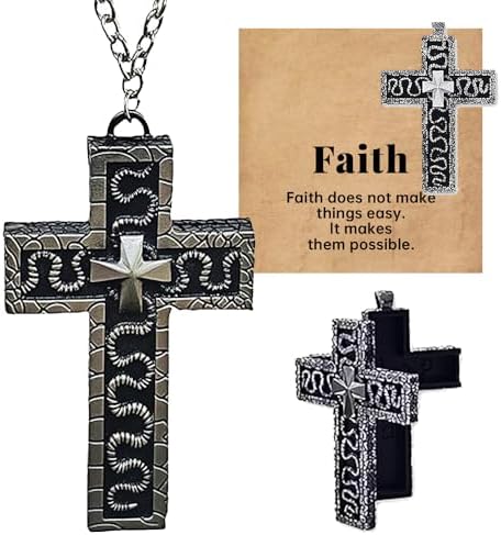 Necklace for Men & Women - 3D Printed Cross Pendant with Secret Hidden Compartment, Ten Character Dark Box Design, Stainless Steel Chain, Unisex Vintage Jewelry Gift for Fans & Cosplay