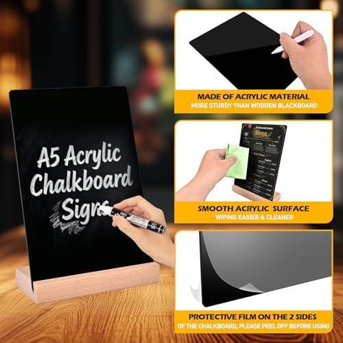- 【 Reliable Acrylic Chalk Board 】 Each small chalkboard sign measures 15 x 21 cm/6 x 8 inches with 0.1 inch thickness, made of quality acrylic, which can help to erase cleaner and write clearer (Tips: Please peel off the protective film on the both sides before using)