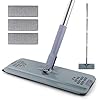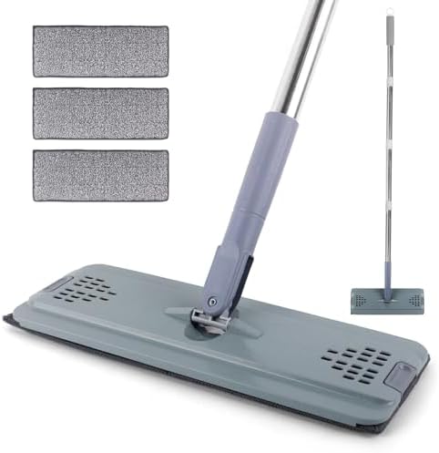 Flat Mop with 3 Pads, Microfiber Mops for Floor Cleaning Adjustable Handle 29-49, Dust Mop for Hardwood Floors, Wet Dry Use on Laminate Wood Tile Vinyl Wall Mopping Bathroom Kitchen Household Supplies