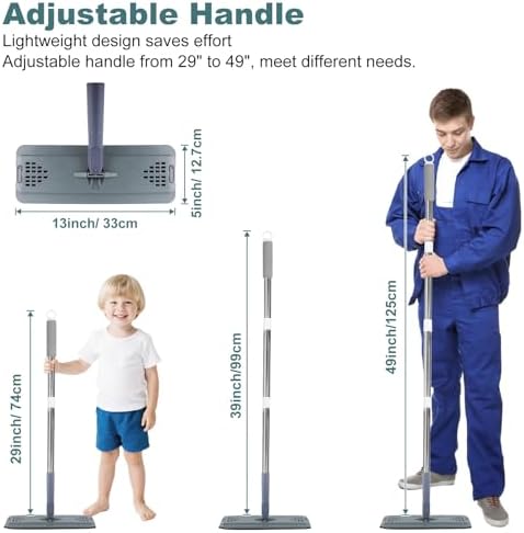- Microfiber Flat Mop with Adjustable Handle: Master every cleaning task with this hardwood floor mop and dust mop combo! The extendable handle (29" to 49") offers a shorter length for kids while eliminating back strain for adults, making this wet mop a perfect cleaning tool for cleaning floors and baseboards, mopping high windows or reaching baseboards without bending. This mop is a good addition to apartment essentials and cleaning supplies for housekeeping.