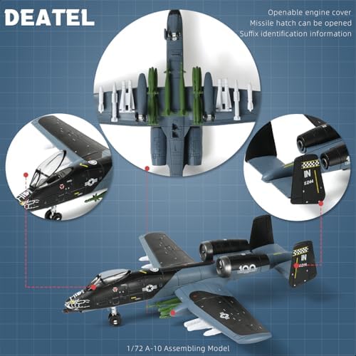 - Easy to assemble: The A-10 Warthog Thunderbolt II attack aircraft model kit's parts are carefully designed for compatibility and can be easily assembled without special tools. The kit includes step-by-step instructions, making it easy for even beginners to get started. The assembled aircraft model also features detachable missiles, weapons, and removable fighter wheels for a more realistic display.